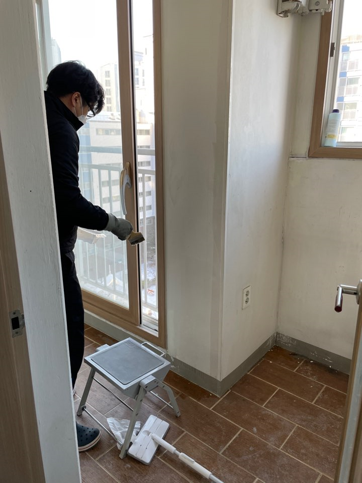 남편과 함께 베란다 곰팡이를 제거했다.
